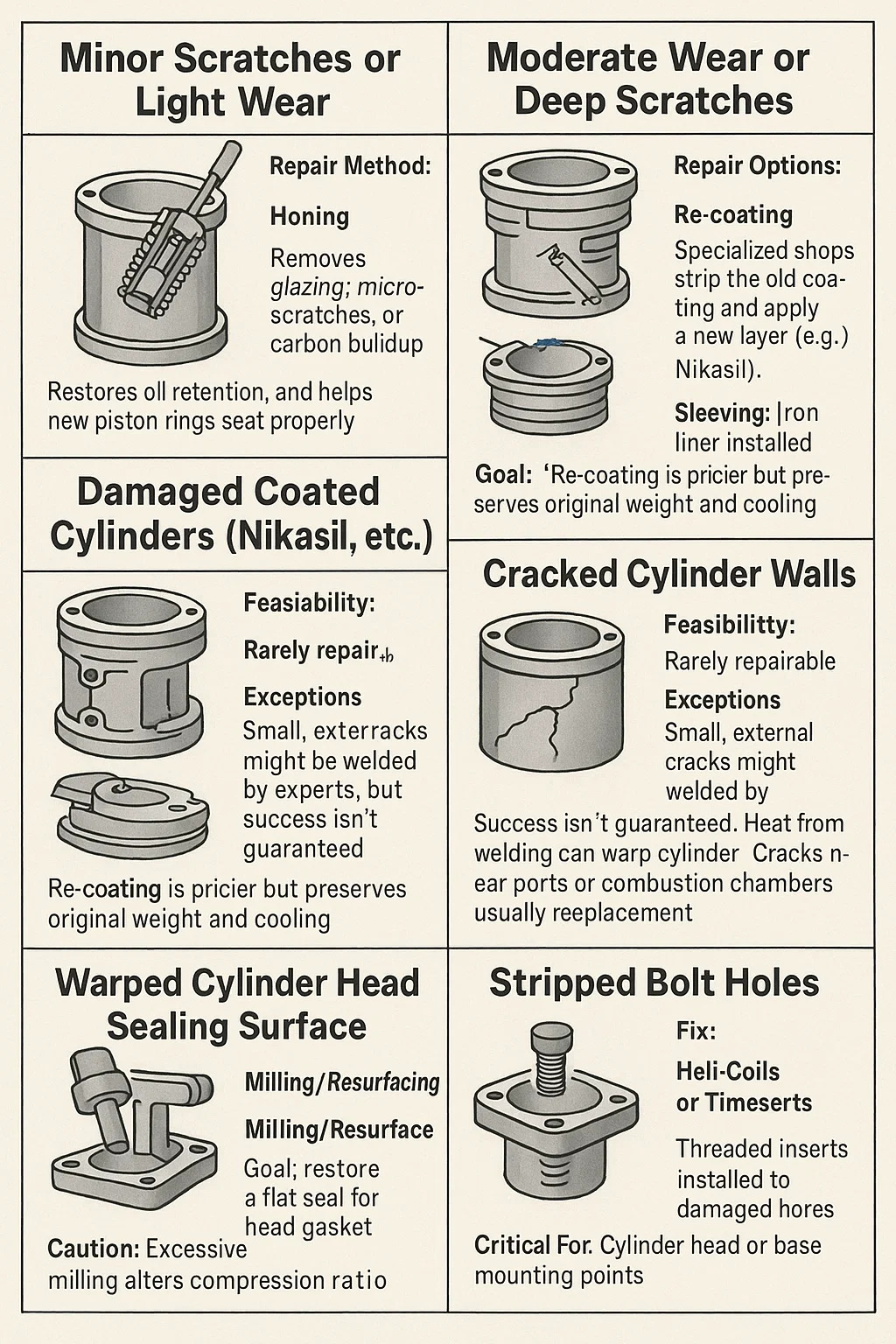 absolútne, motocyklové valce možno často opraviť v závislosti od typu a závažnosti poškodenia. Tu je praktický rozpis: